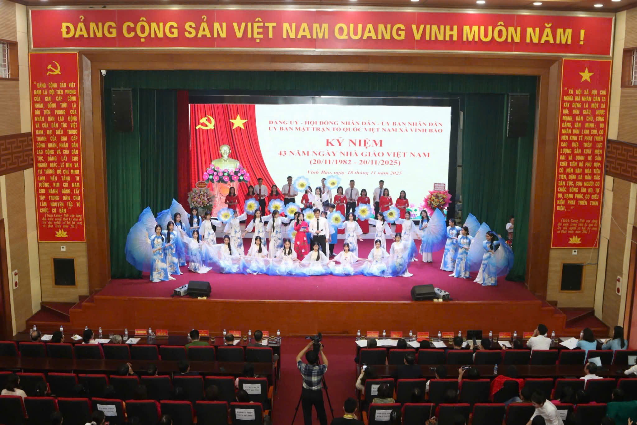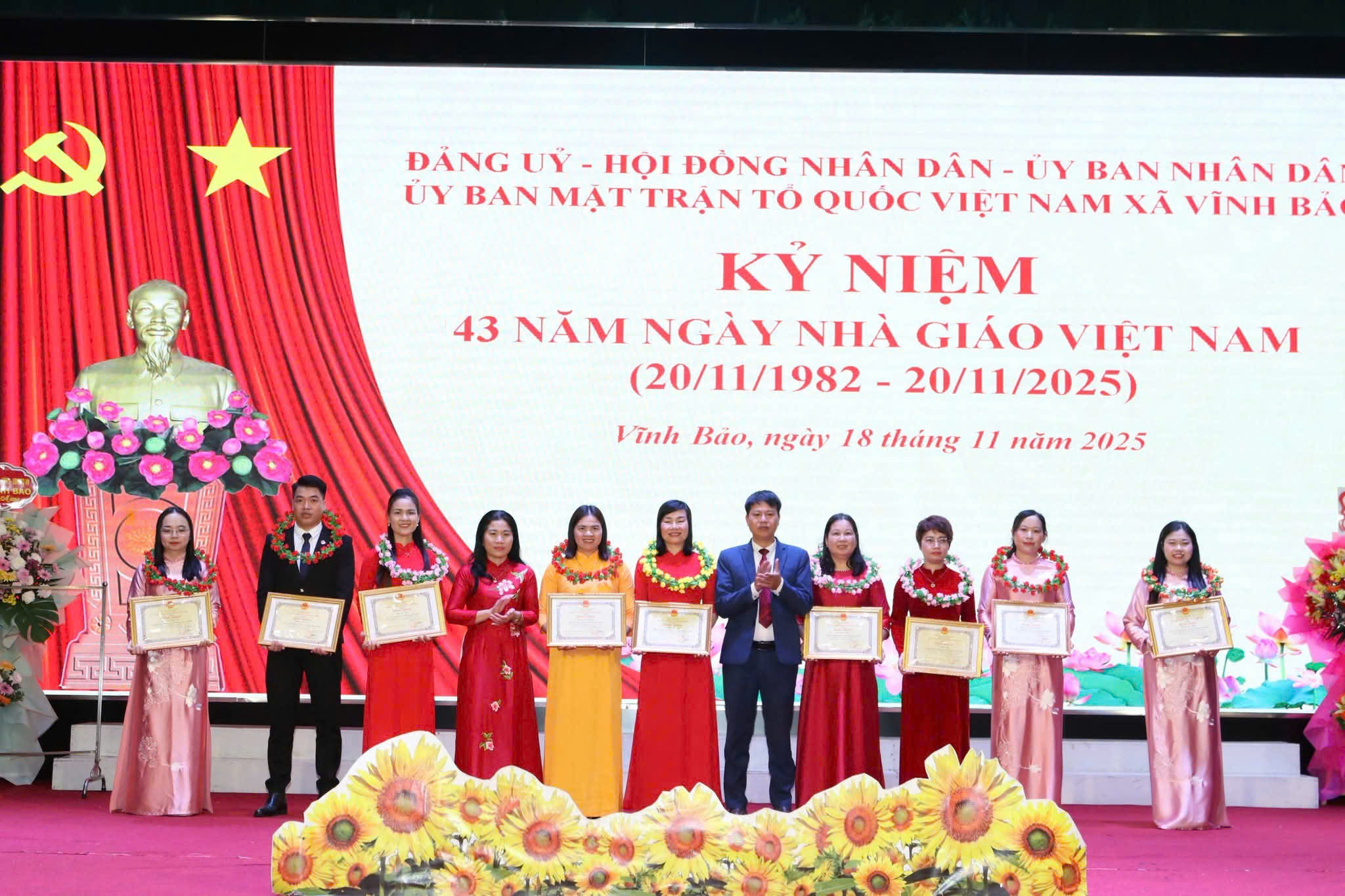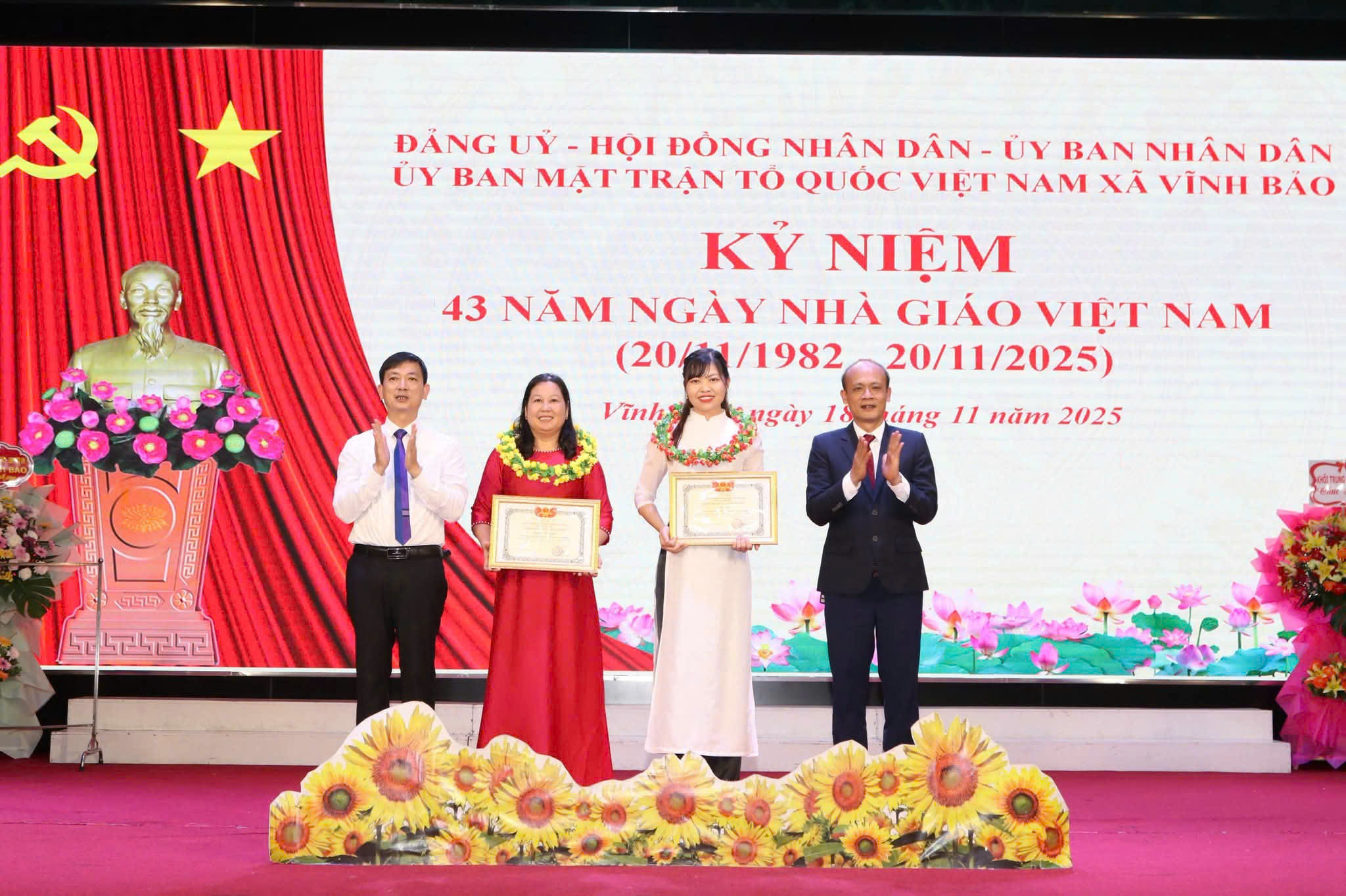 Nhân dịp kỷ niệm Ngày Nhà giáo Việt Nam, xã Vĩnh Bảo trân trọng gửi lời tri ân sâu sắc tới các thầy giáo, cô giáo - những người đã và đang miệt mài cống hiến, gieo mầm tri thức, bồi đắp nhân cách, truyền cảm hứng và chắp cánh ước mơ cho các thế hệ học sinh. Đây cũng là dịp để toàn xã hội bày tỏ tình cảm, sự biết ơn và tôn vinh những đóng góp to lớn của đội ngũ nhà giáo đối với sự nghiệp giáo dục và đào tạo.