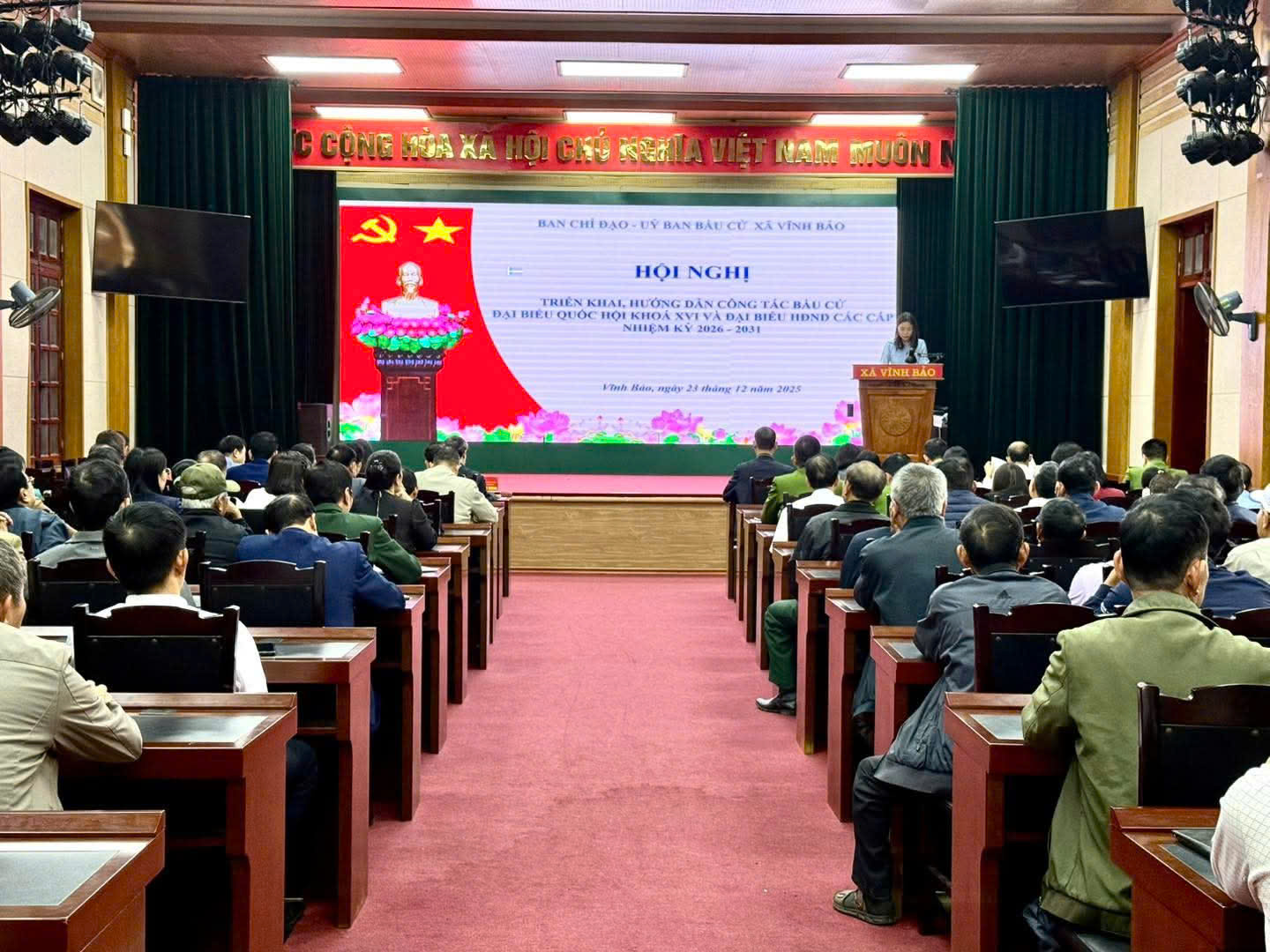 Sáng ngày 23/12, tại Hội trường Ủy ban nhân dân xã, Ban Chỉ đạo - Ủy ban Bầu cử xã Vĩnh Bảo tổ chức Hội nghị triển khai, hướng dẫn công tác bầu cử đại biểu Quốc hội khóa XVI và đại biểu Hội đồng nhân dân các cấp nhiệm kỳ 2026-2031.