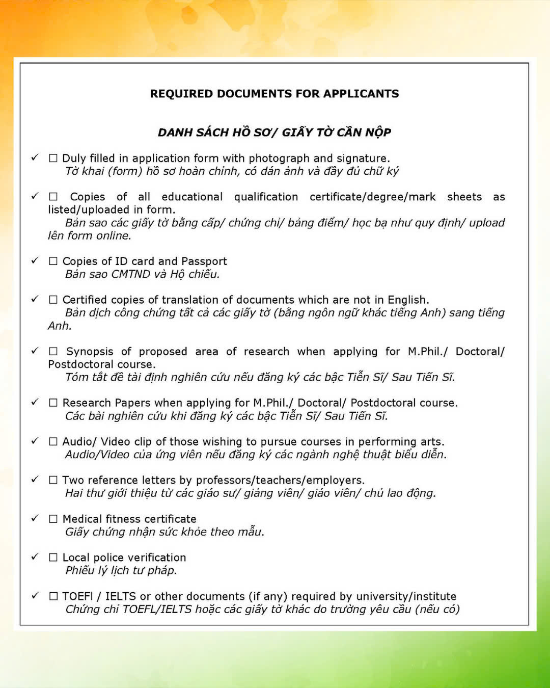 Thông báo về việc thông tin về Học bổng của Chính phủ Ấn Độ