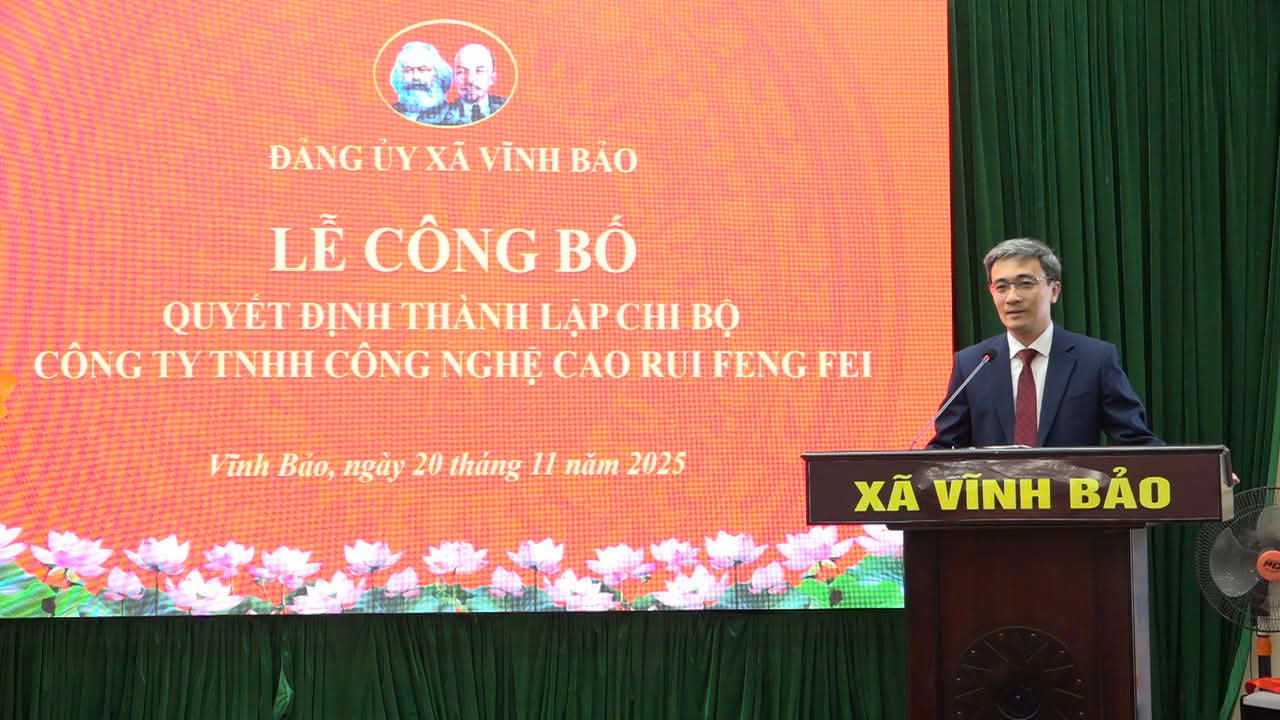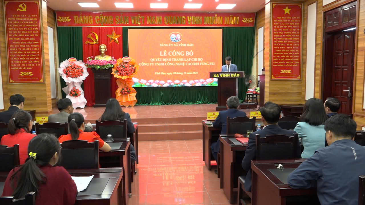 Chiều ngày 20/11, tại trụ sở Đảng ủy xã Vĩnh Bảo, Đảng ủy xã đã tổ chức trọng thể Lễ công bố Quyết định thành lập Chi bộ Công ty TNHH Công nghệ Cao RuiPengFei.