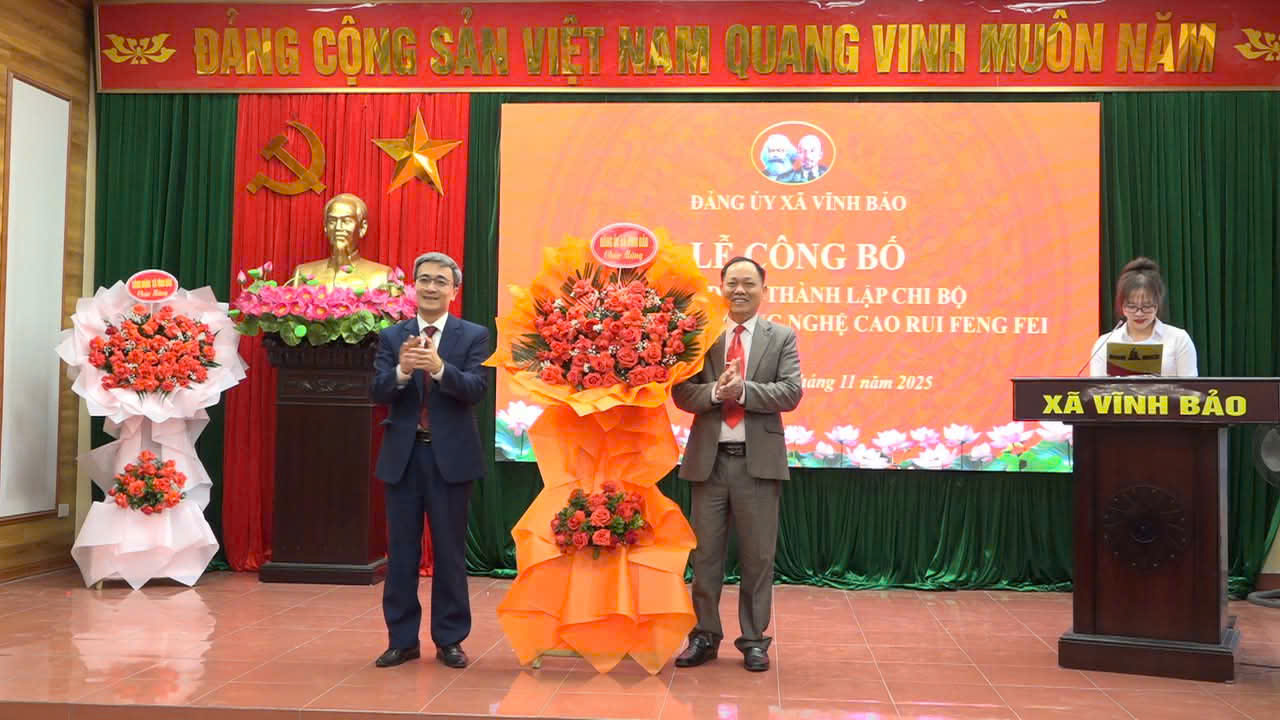 ĐẢNG ỦY XÃ VĨNH BẢO TỔ CHỨC LỄ CÔNG BỐ QUYẾT ĐỊNH THÀNH LẬP CHI BỘ CÔNG TY TNHH CÔNG NGHỆ CAO RUIPENGFEI