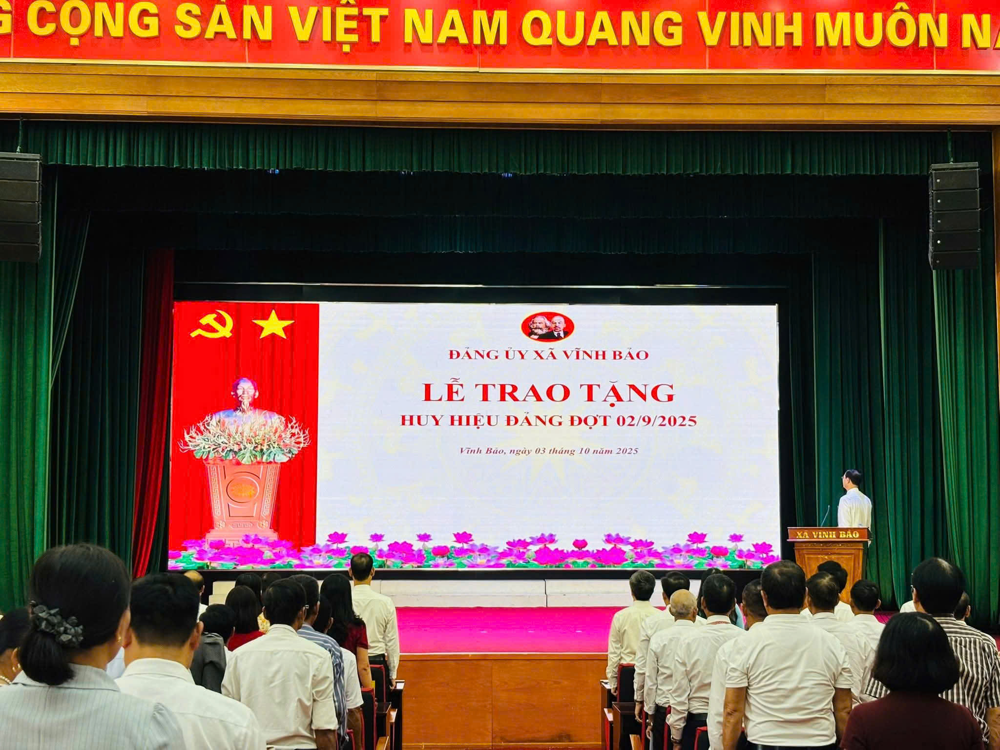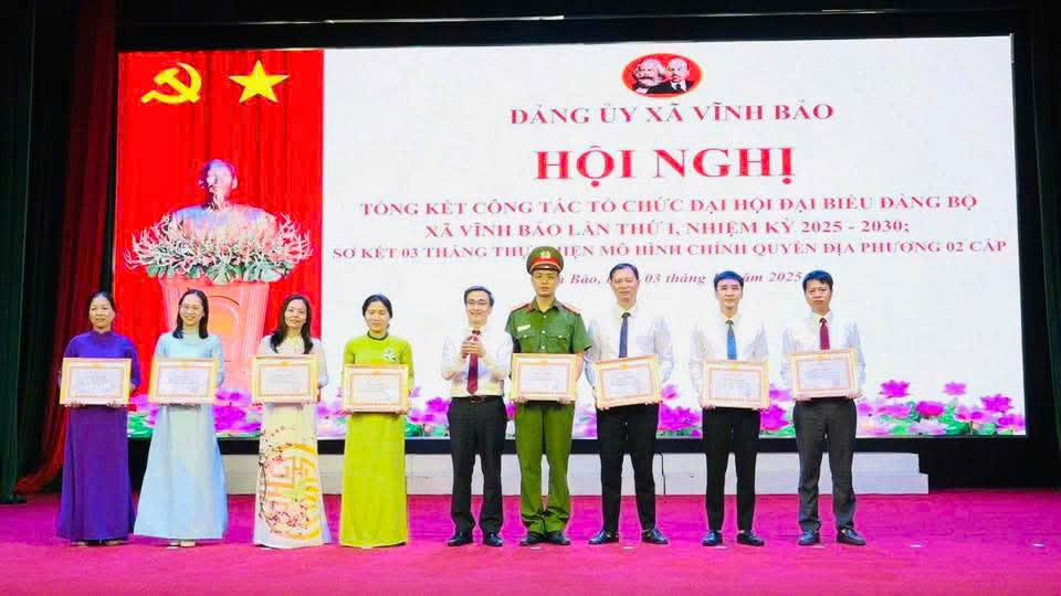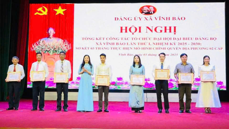 Sáng ngày 03/10/2025, tại Trung tâm Văn hóa Nguyễn Bỉnh Khiêm, Đảng ủy xã Vĩnh Bảo long trọng tổ chức Lễ trao tặng Huy hiệu Đảng đợt 02/9/2025, đồng thời tổng kết công tác tổ chức Đại hội đại biểu Đảng bộ xã Vĩnh Bảo lần thứ I, nhiệm kỳ 2025-2030 và sơ kết 03 tháng triển khai mô hình chính quyền địa phương hai cấp.