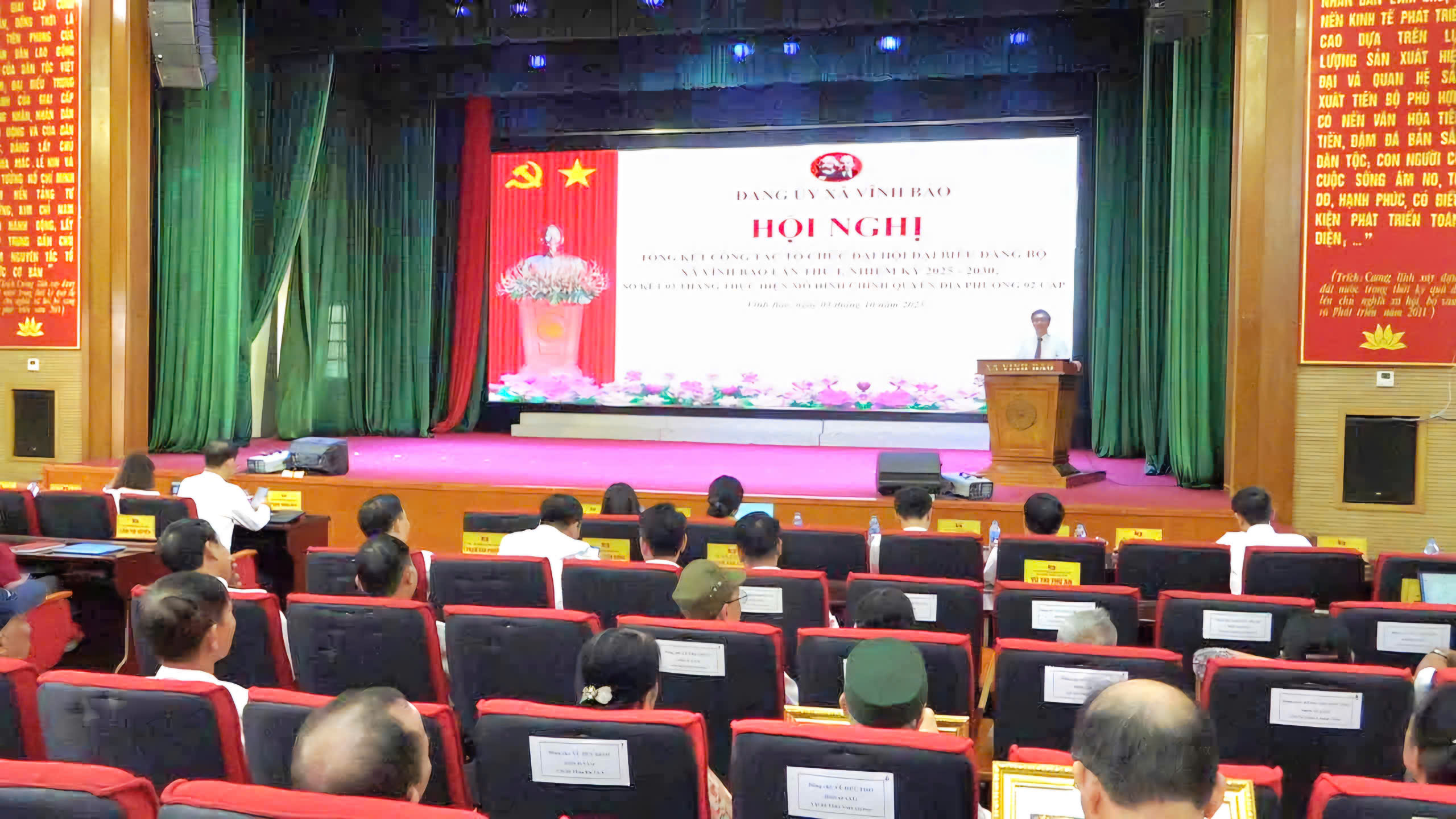 Quang cảnh Hội nghị tổng kết Đại hội đại biểu Đảng bộ xã Vĩnh Bảo lần thứ I và sơ kết 03 tháng triển khai mô hình chính quyền địa phương hai cấp