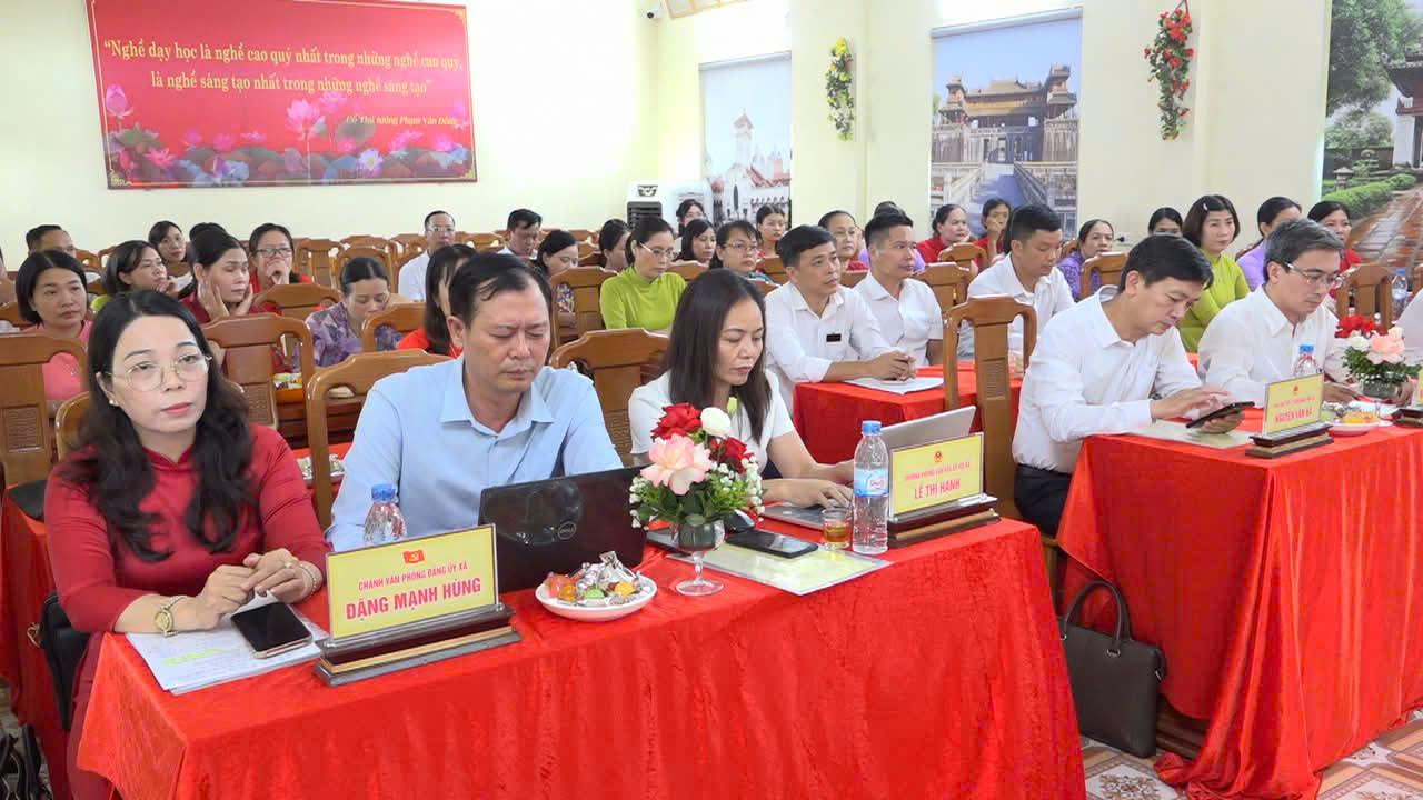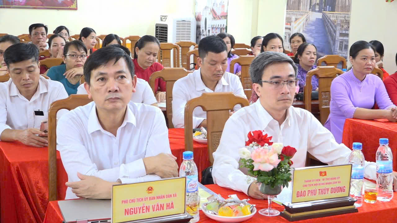 Tham dự Hội nghị có đồng chí Đào Phú Thùy Dương - Ủy viên Thành ủy, Bí thư Đảng ủy, Chủ tịch HĐND xã; đồng chí Nguyễn Văn Hà - Phó Chủ tịch UBND xã, Giám đốc Trung tâm Phục vụ hành chính công xã; đại diện lãnh đạo Văn phòng Đảng ủy, Phòng Văn hóa - Xã hội xã, cùng toàn thể cán bộ, giáo viên, nhân viên nhà trường và đại diện Hội phụ huynh học sinh.