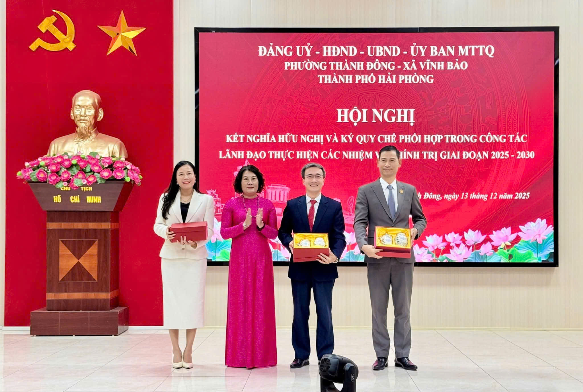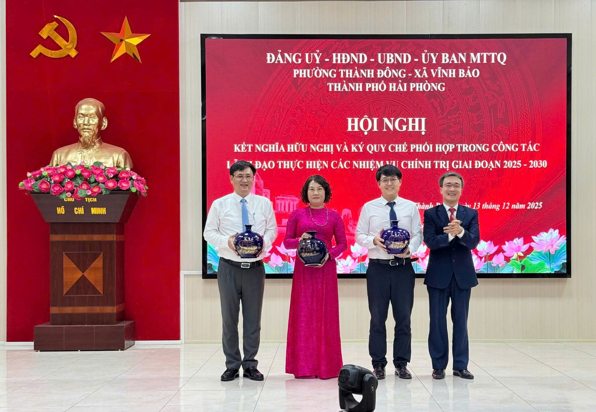 Chiều ngày 13/12, tại trụ sở phường Thành Đông, Đảng ủy - HĐND - UBND - Ủy ban MTTQ phường Thành Đông và xã Vĩnh Bảo đã long trọng tổ chức Hội nghị kết nghĩa hữu nghị và ký kết Quy chế phối hợp trong công tác lãnh đạo, chỉ đạo và thực hiện các nhiệm vụ chính trị giai đoạn 2025 - 2030.