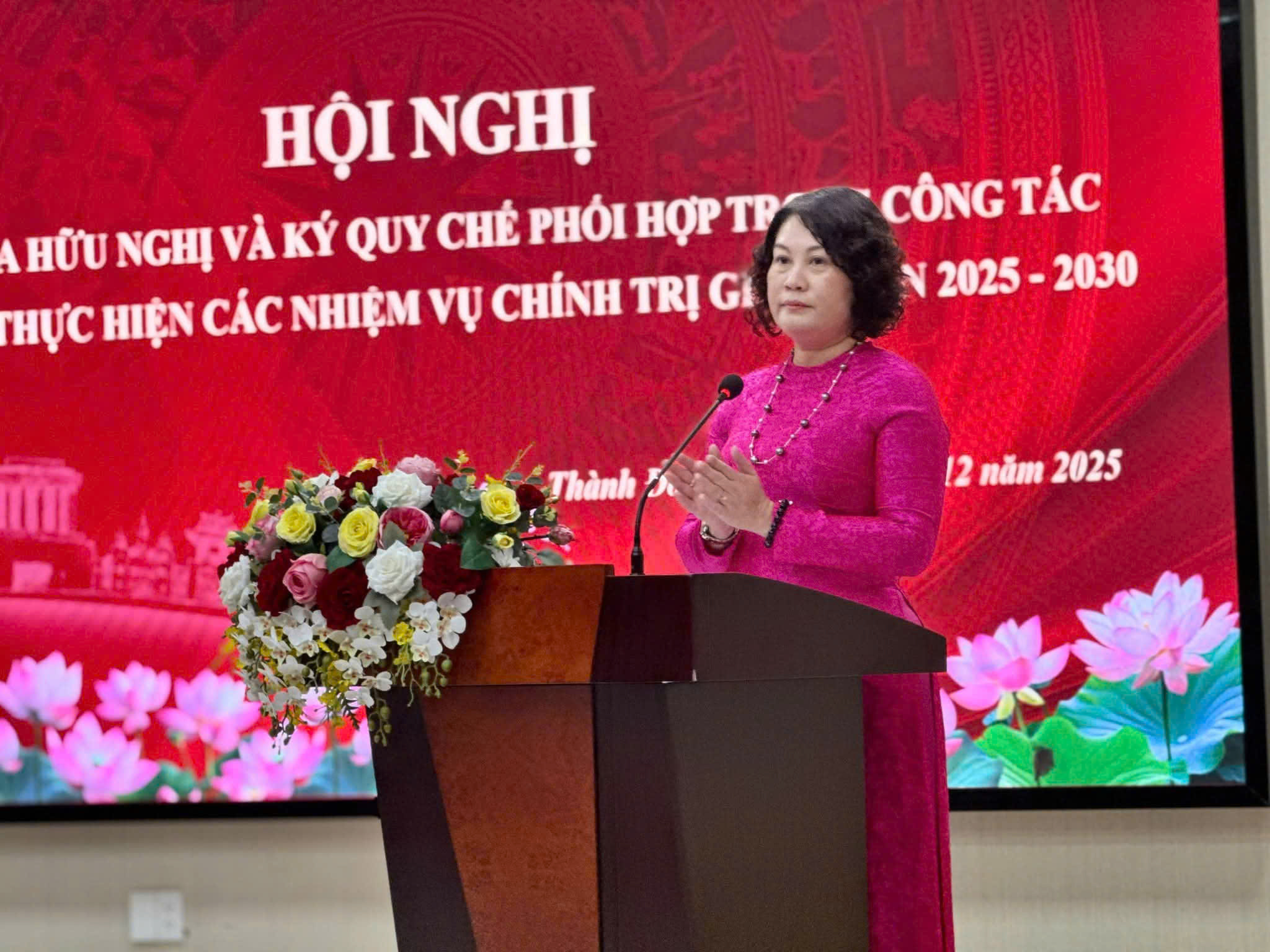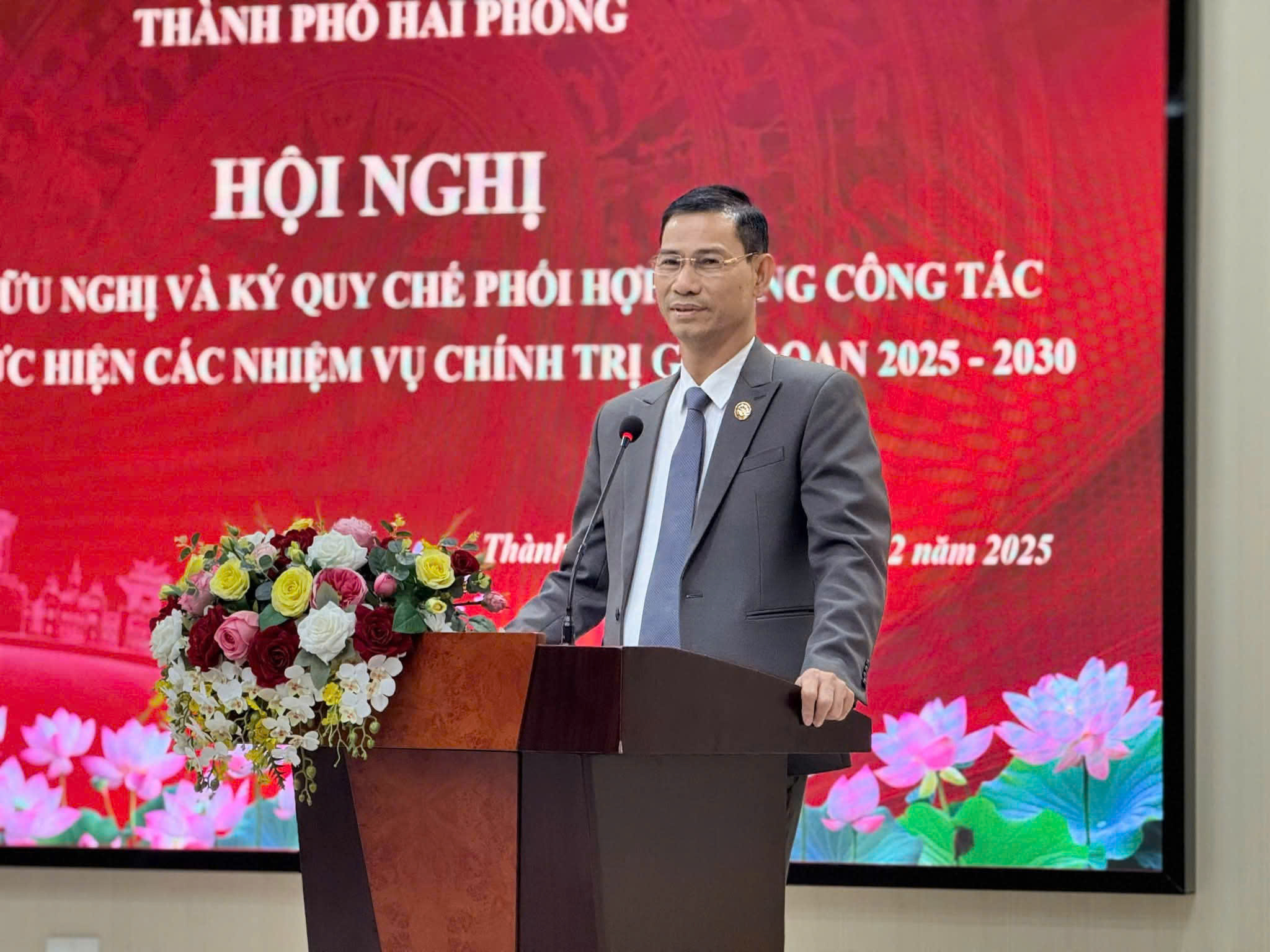 Đồng chí Ngô Thị Thanh Hòa - Thành ủy viên, Bí thư Đảng ủy, Chủ tịch HĐND phường Thành Đông và đồng chí Đào Phú Thùy Dương - Thành ủy viên, Bí thư Đảng ủy, Chủ tịch HĐND xã Vĩnh Bảo, đại diện hai địa phương ký Quy chế phối hợp trong công tác lãnh đạo thực hiện các nhiệm vụ chính trị giai đoạn 2025-2030