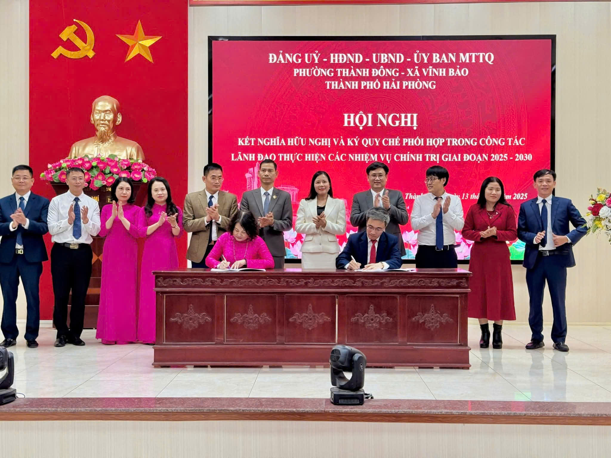 XÃ VĨNH BẢO VÀ PHƯỜNG THÀNH ĐÔNG KẾT NGHĨA HỮU NGHỊ, KÝ KẾT QUY CHẾ PHỐI HỢP GIAI ĐOẠN 2025 - 2030